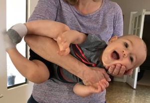 Remember to perform the above holding positions to each side, left and right, and alternate the elevated leg frequently to avoid your baby becoming stronger on one side compared to the other. If baby becomes fussy, change positions realizing that they may be resistant to that position due to a weakness.